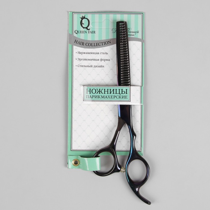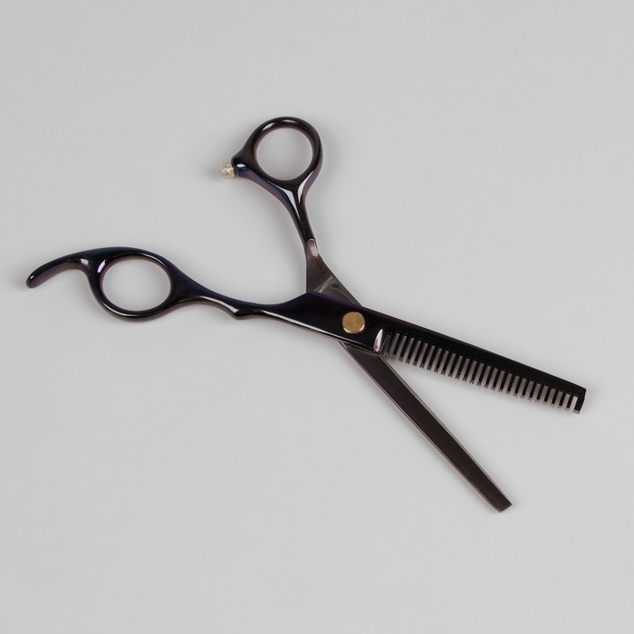 Ножницы филировочные с упором, загнутые кольца, лезвие 6см, цвет чёрный