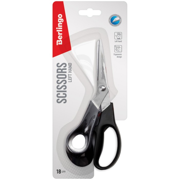 Ножницы канцелярские для левшей 18 см Berlingo, эргономичные ручки, европодвес станут прекрасным бытовым помощником для вас и ваших детей!