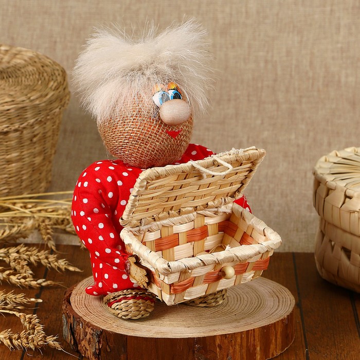 Оберег «Домовёнок Кузенька», с сундуком, 18 см