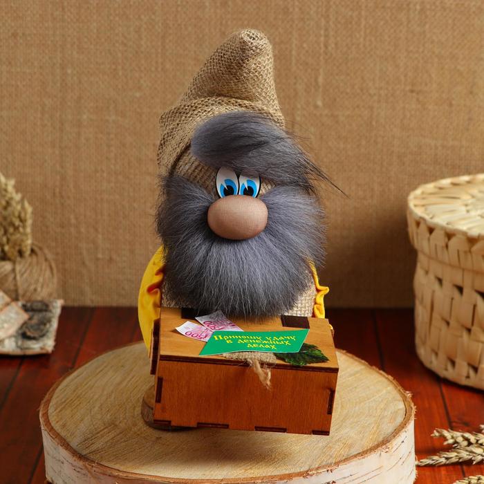 Оберег «Домовой Васек», с сундуком, меховой, 24 см, микс