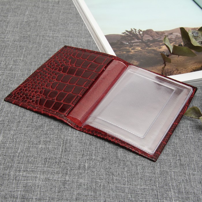 Обложка для автодокументов, 5 карманов для карт, крокодил, цвет винный