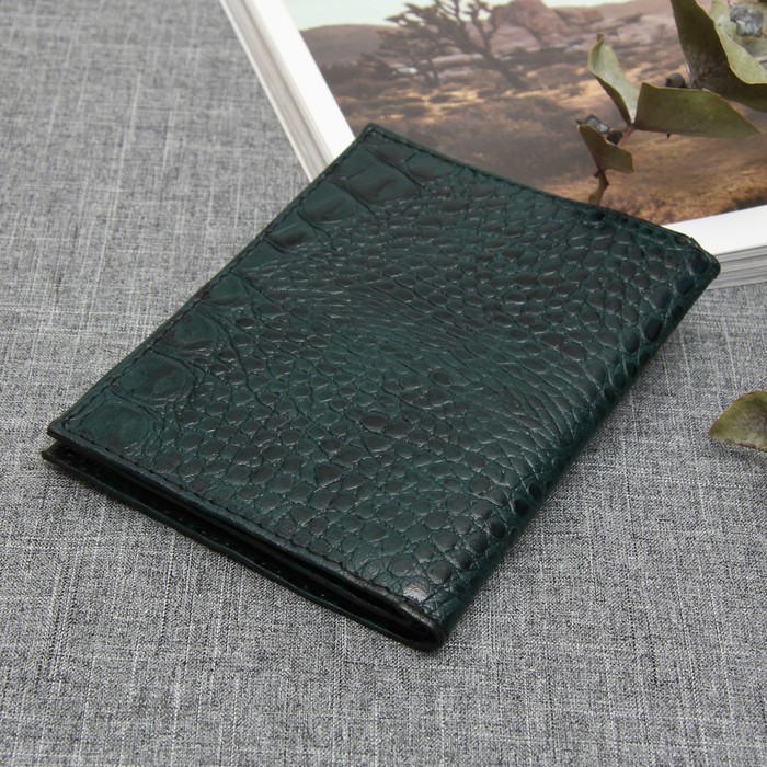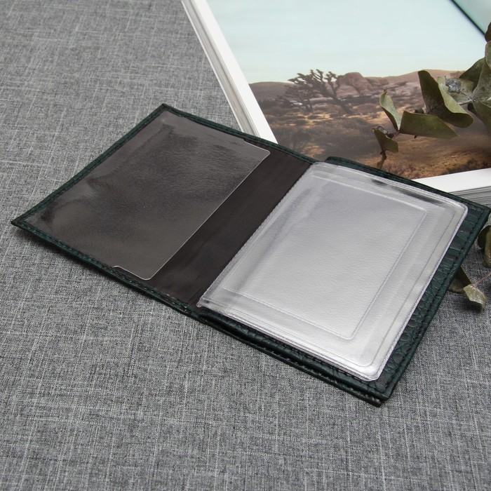 Обложка для автодокументов и паспорта, 5 карманов для карт, кайман, цвет зелёный