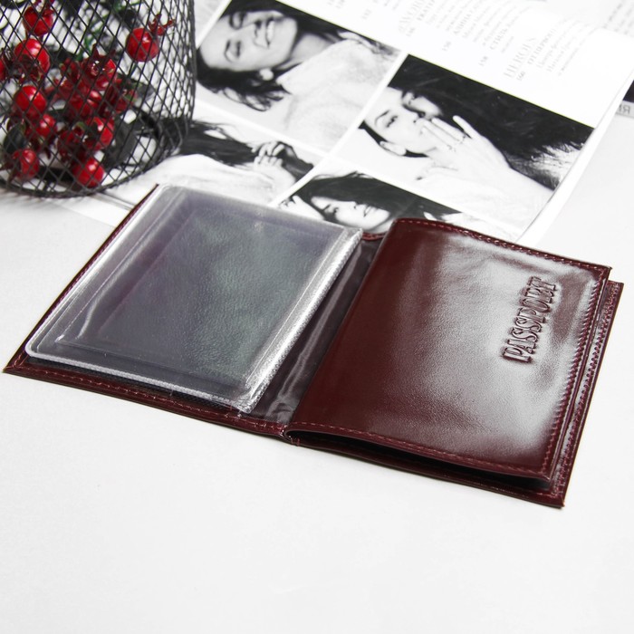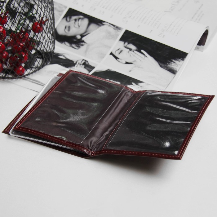 Обложка для автодокументов и паспорта, бордовый глянцевый