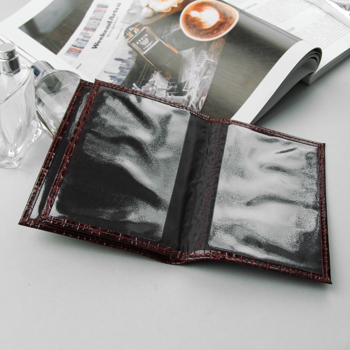 Обложка для автодокументов и паспорта, бордовый крокодил