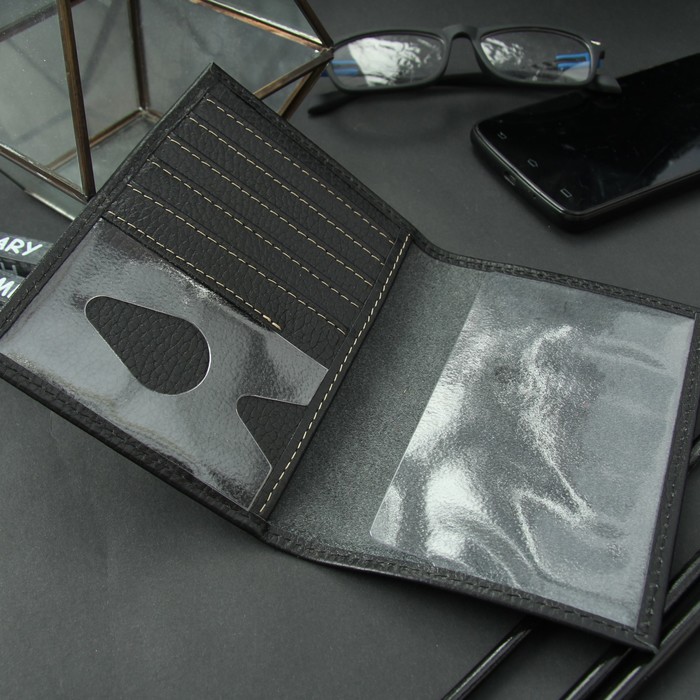 Обложка для автодокументов и паспорта, флотер, цвет чёрный