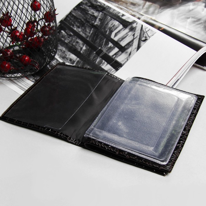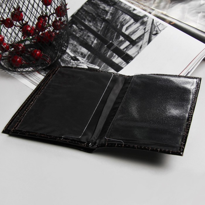 Обложка для автодокументов и паспорта, крокодил, цвет тёмный шоколад
