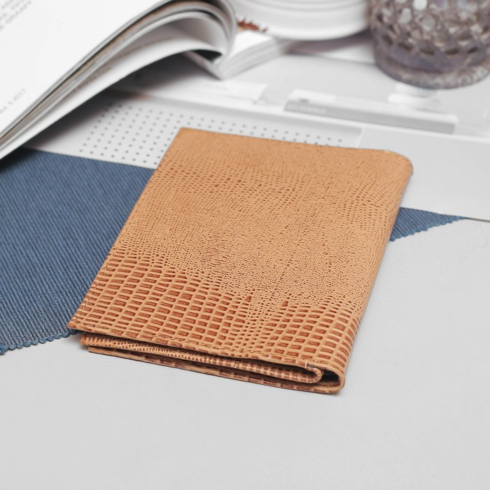 Обложка для автодокументов и паспорта, с хлястиком, ящерица, цвет бежевый