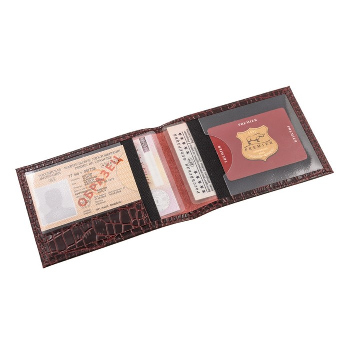 Обложка для автодокументов, н/к, цвет бордо крокодил