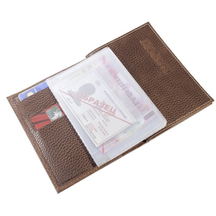 Обложка для автодокументов, отдел для паспорта, для кредитных карт, цвет коричневый