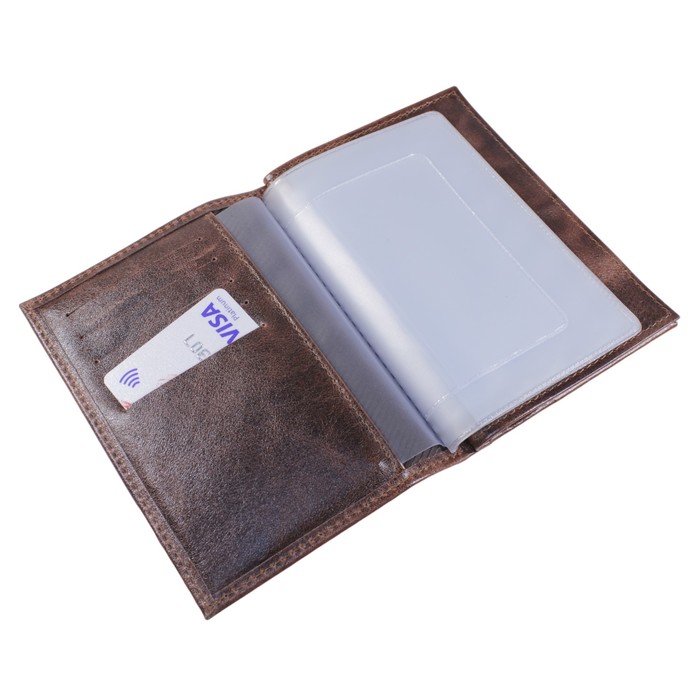 Обложка для автодокументов, отдел для паспорта, для кредитных карт, цвет коричневый