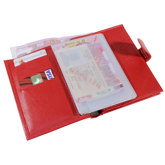 Обложка для автодокументов, отдел для паспорта, для купюр, для кредитных карт, цвет алый