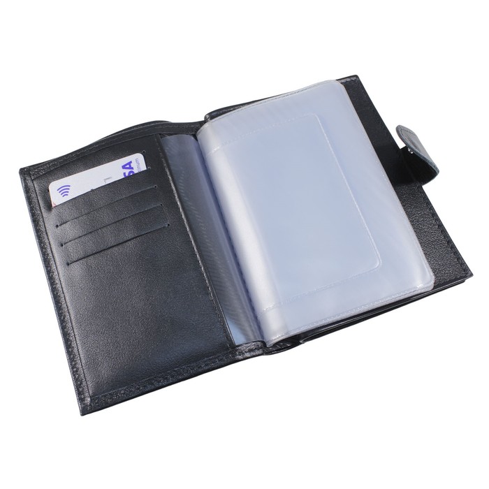 Обложка для автодокументов, отдел для паспорта, для купюр, для кредитных карт, цвет чёрный