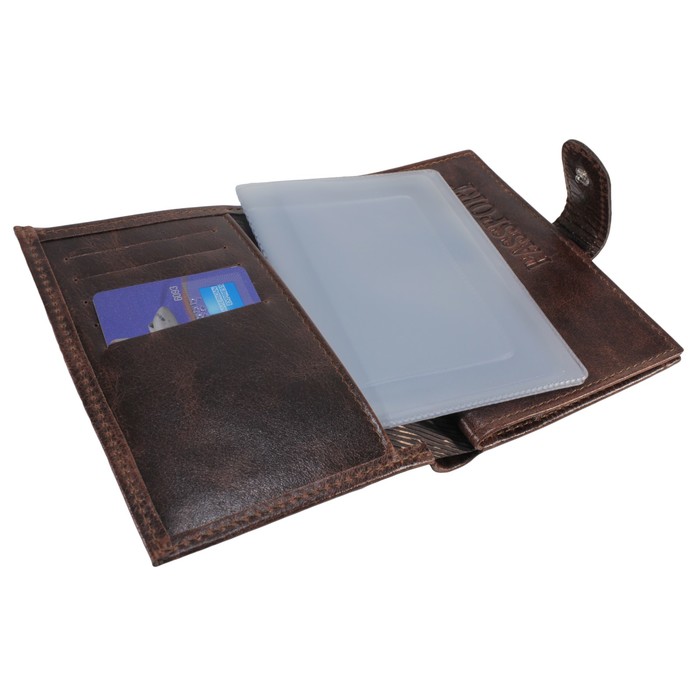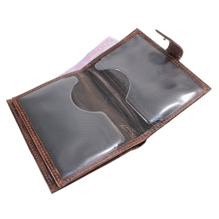 Обложка для автодокументов, отдел для паспорта, для купюр, для кредитных карт, цвет коричневый
