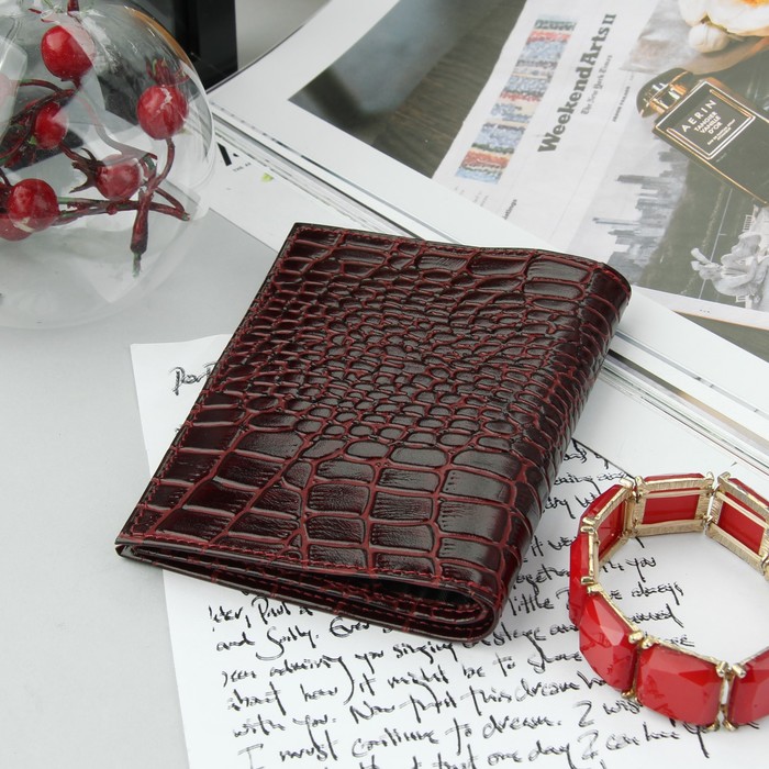 Обложка для автодокументов, отдел для паспорта, крокодил, цвет бордовый