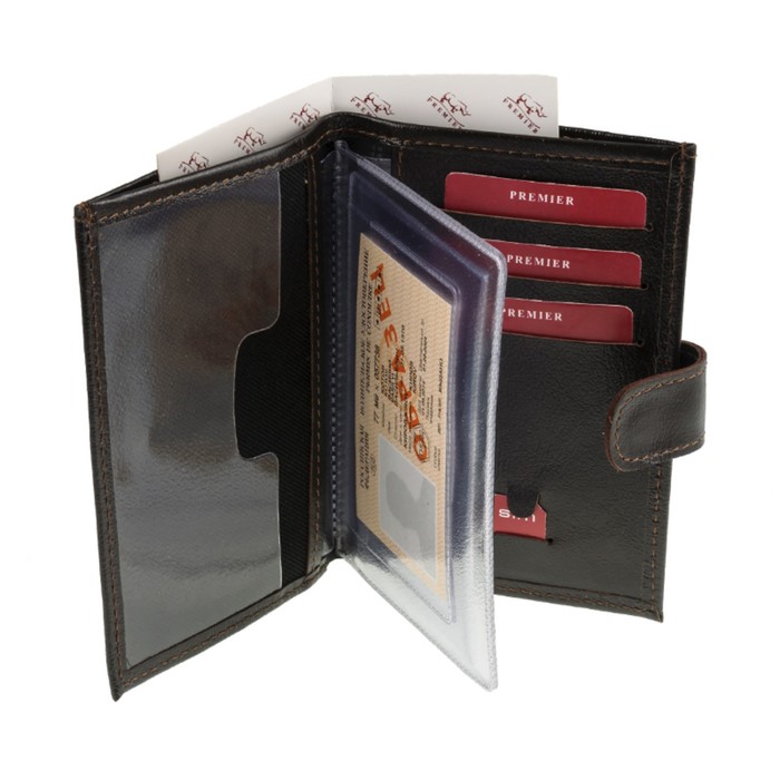 Обложка для автодокументов, отдел для паспорта, отдел для купюр, цвет коричневый