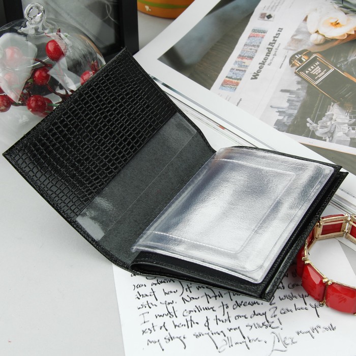Обложка для автодокументов, отдел для паспорта, ящерица, цвет чёрный