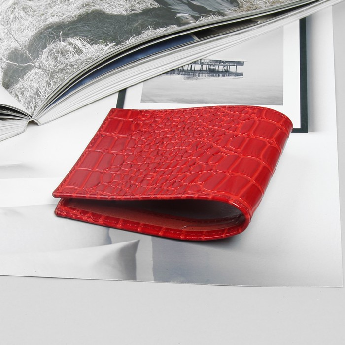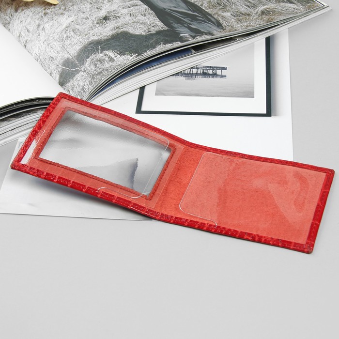Обложка для документов, окно из прозрачного пластика, крокодил, цвет красный