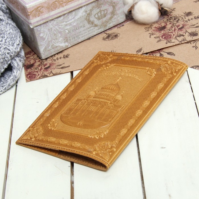 Обложка для паспорта, 3D тиснение, герб, цвет рыжий