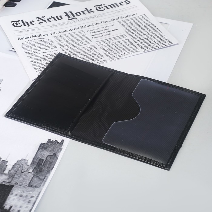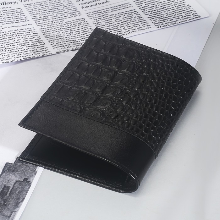 Обложка для паспорта, 4 кармана для карт, крокодил, цвет чёрный/чёрный матовый