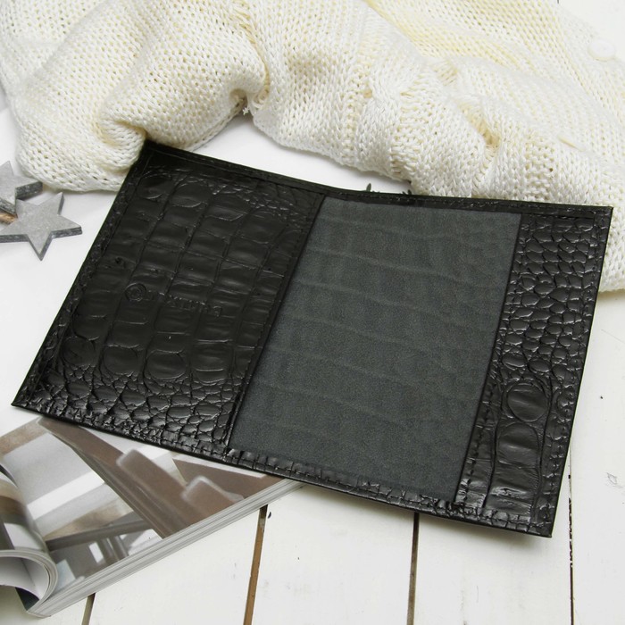 Обложка для паспорта, 5 карманов для карт, кайман, цвет чёрный