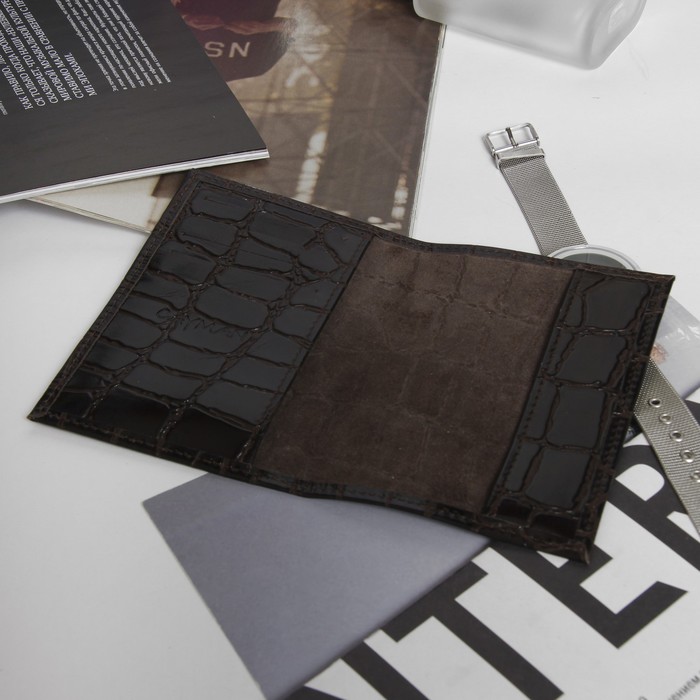 Обложка для паспорта, 5 карманов для карт, скат, цвет коричневый