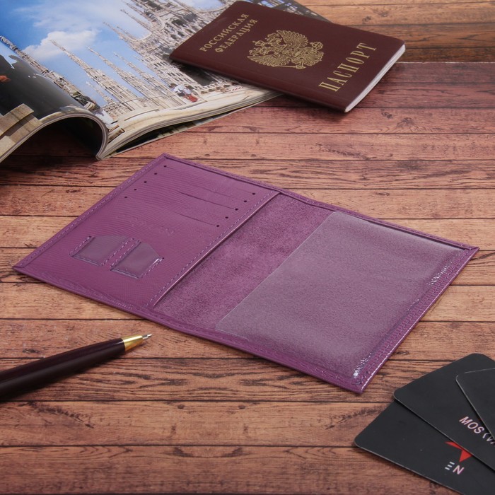 Обложка для паспорта, 5 отделов для карт, игуана, сиреневая