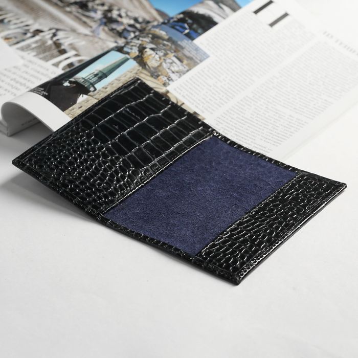 Обложка для паспорта, для карт, крокодил, цвет тёмно-синий