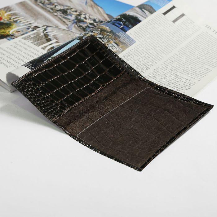 Обложка для паспорта, крокодил, цвет тёмный шоколад