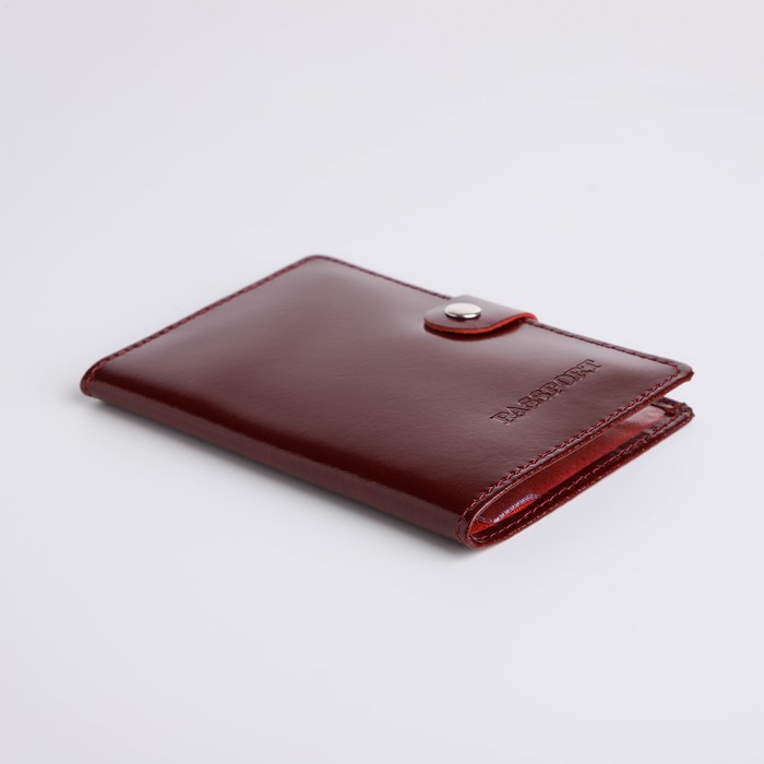 Обложка для паспорта на кнопке, бордовый глянцевый