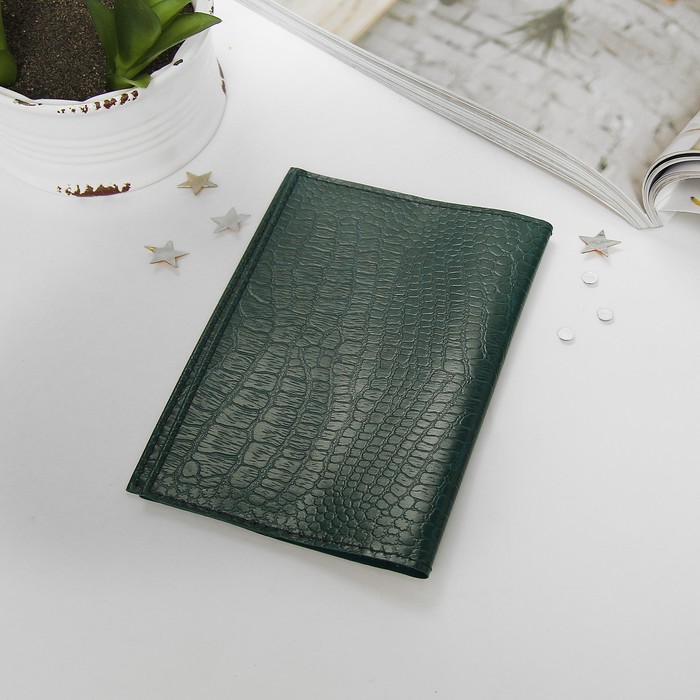 Обложка для паспорта ультратонкая, зелёная рептилия