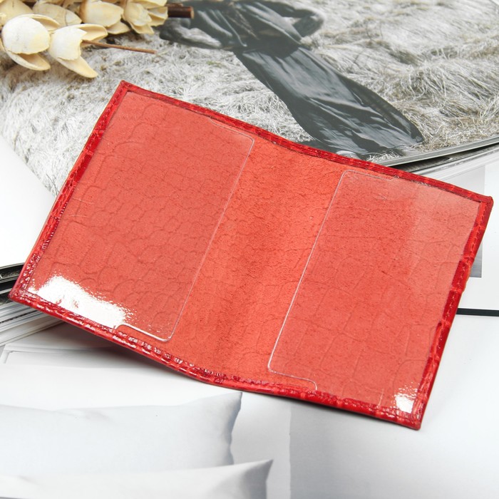 Обложка для пенсионного удостоверения, крокодил, цвет красный