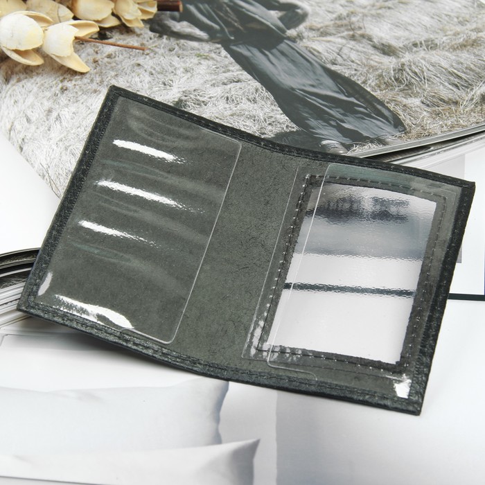 Обложка для пенсионного удостоверения, прозрачное окно, анилин чёрный