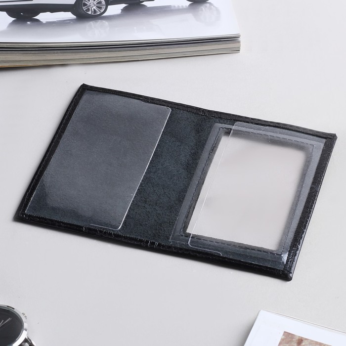 Обложка для пенсионного удостоверения, прозрачное окно, наплак, цвет чёрный