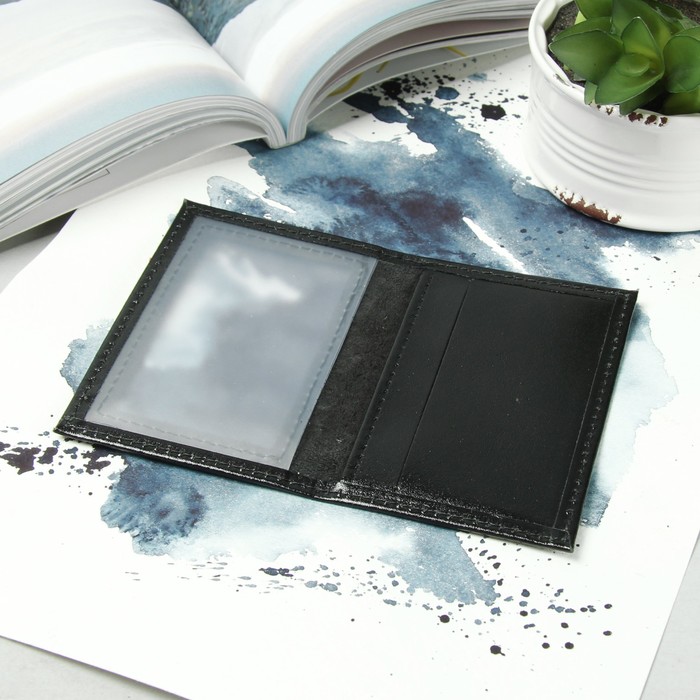 Обложка для удостоверения с окошком, цвет чёрный гладкий