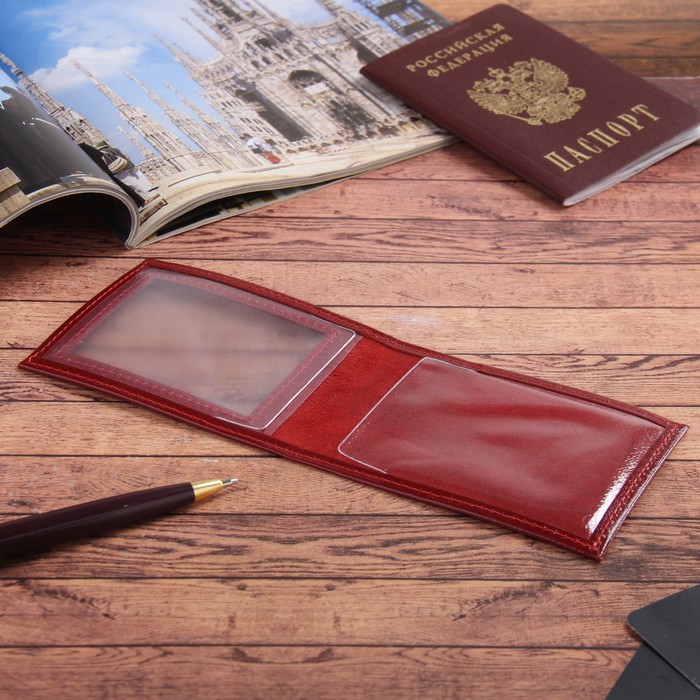 Обложка для удостоверения с окошком, цвет красный гладкий