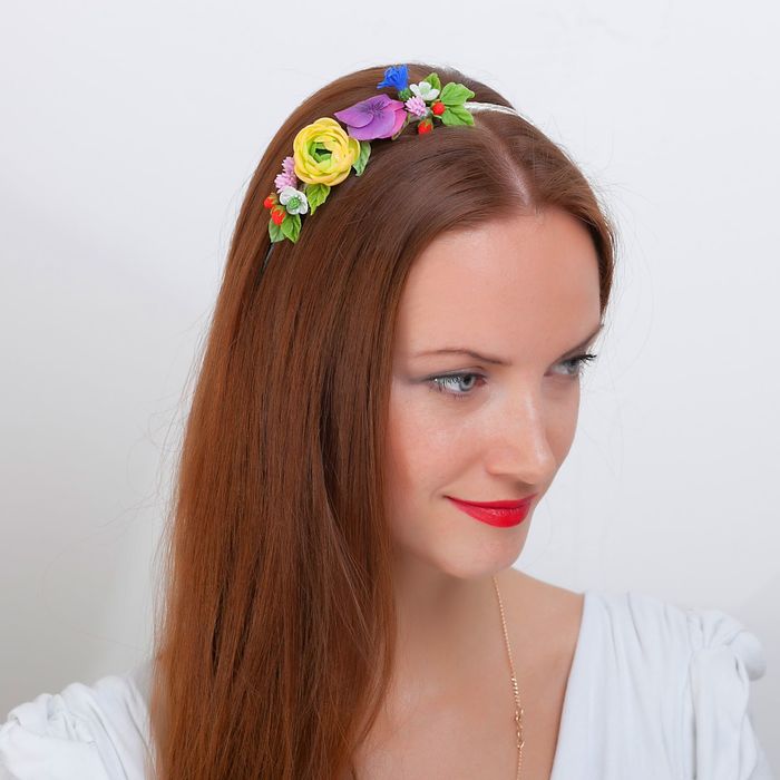 Вы когда-нибудь носили живые цветы в волосах? Это невероятно красиво, но весьма не практично. Ободок для волос ручной работы "Ягодный" поможет осуществить эту задумку без лишних неудобств.