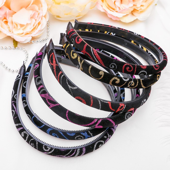 Ободок для волос "Вирджиния" 1 см блестящие узоры, микс — отличный помощник в создании аккуратной и красивой укладки за считанные секунды. Сделайте образ ярким!