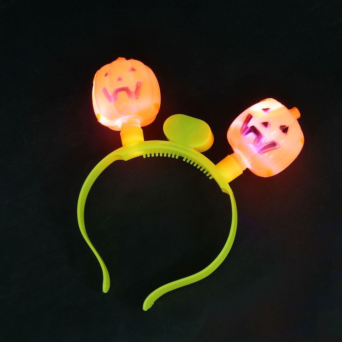 Для самого сказочного праздника в году выбирайте только волшебные аксессуары! Тематический ободок с тыковками, главным символом Хэллоуина, создаст неповторимый стиль на вечеринке с переодеванием. Он украсит вашу причёску и добавит образу мистики и таинственности. А если неожиданно погаснет свет, то яркие светящиеся овощи на пружинке будут озарять вам путь и отпугивать злых духов! Станьте самым заметным костюмированным персонажем!