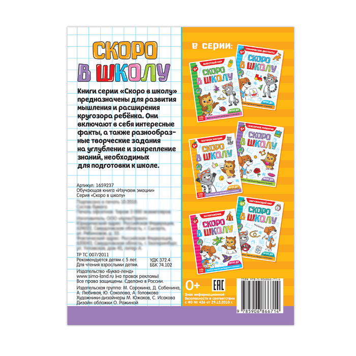 Книжки серии «Скоро в школу» помогут родителям подготовить ребёнка к первому классу. Они включают в себя обучающие и развивающие уроки, интересные факты, а также увлекательные творческие задания.