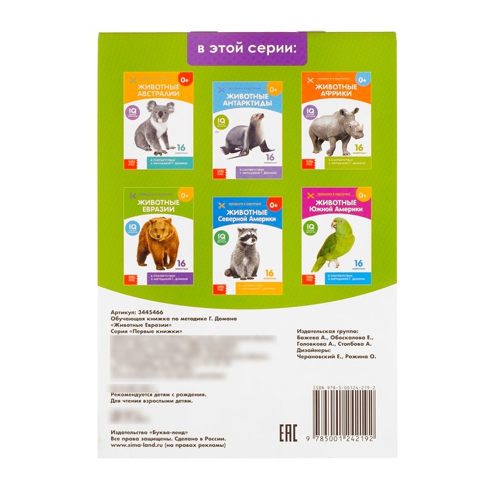 Обучающая книжка по методике Г. Домана "Животные Евразии" 20 стр.
