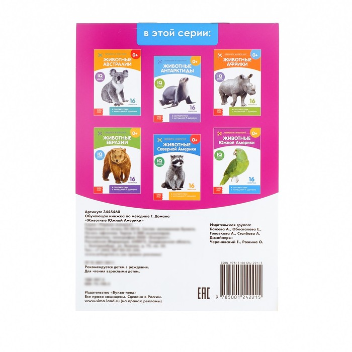 Обучающая книжка по методике Г. Домана "Животные Южной Америки" 20 стр.
