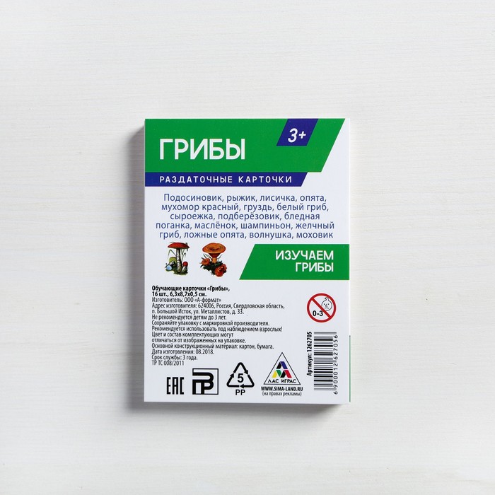 Каждый набор имеет свою особенность. С карточками «Грибы» ребята смогут узнать о съедобных и несъедобных грибах и научатся отличать их по внешнему виду.