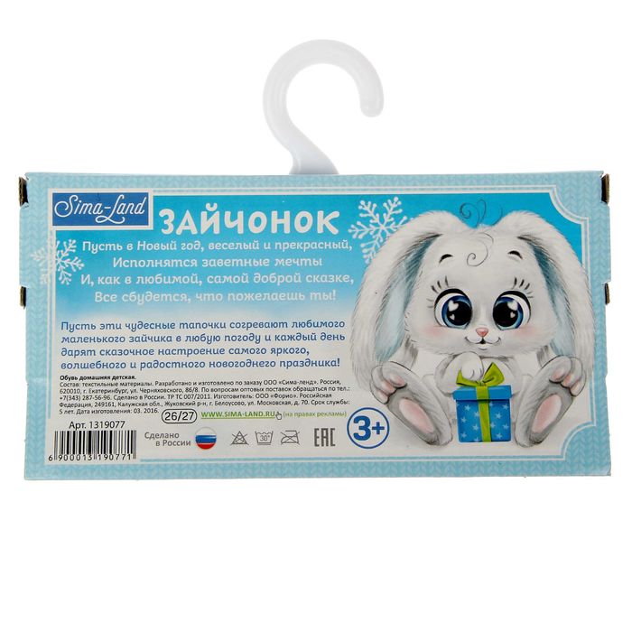Оригинальный новогодний дизайн и яркая упаковка — готовое решение для подарка! Ребята будут счастливы получить мягкие домашние тапочки с вышивкой и почувствуют себя милыми пушистыми зайчатами!
