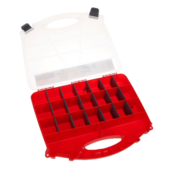 Стройте грандиозные планы, реализуйте свои идеи и не бойтесь знакомиться с новыми материалами и техниками. У вас всё получится, ведь у нас вы найдете инструмент как для бытового использования, так и для профессиональной деятельности. Может быть, Органайзер 46 см Profi, цвет красный — это именно то, что вы всегда искали.