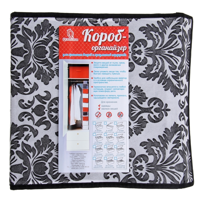 Сложно представить себе быт без хозяйственных товаров. Они нужны всегда и везде — дома, на даче, в офисе. Обратите внимание на Органайзер для белья, 18 ячеек, 35х30х12 см, "Классика. Вензель" , цвет бело-чёрный — полезное и качественное изделие с современным дизайном.