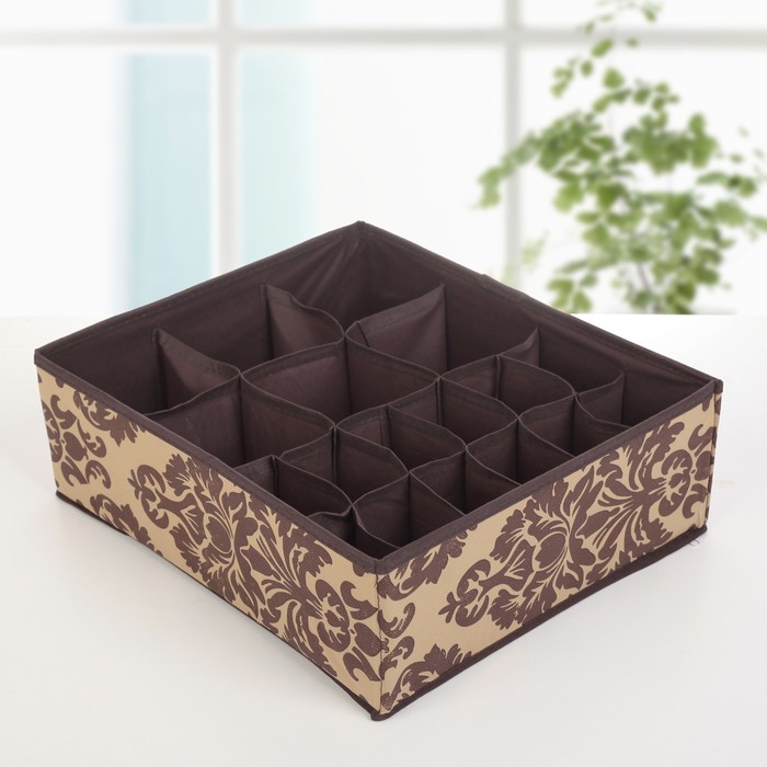 Органайзер для белья, 18 ячеек, 35х30х12 см, "Вензель", цвет коричнево-бежевый
