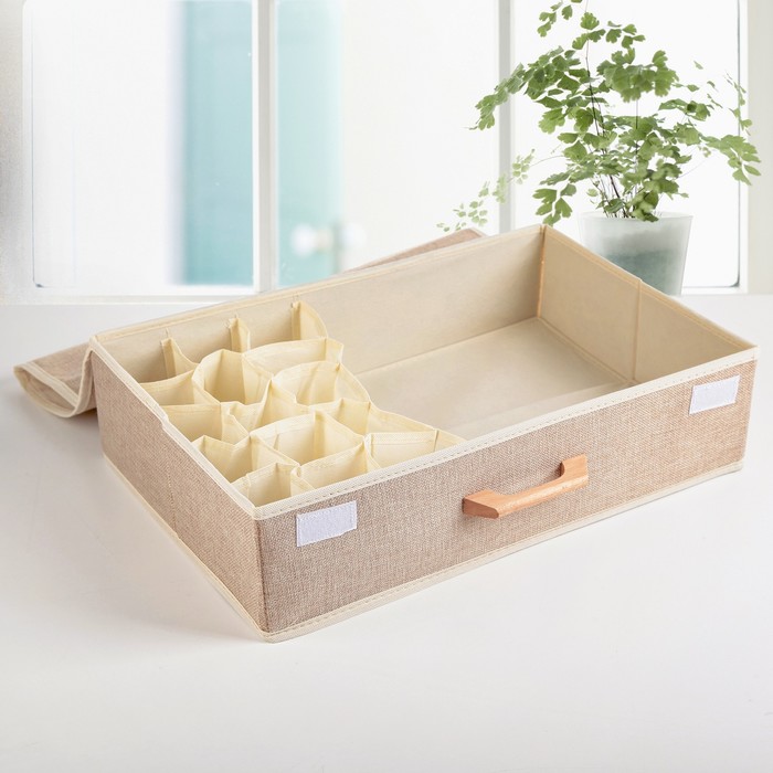 Органайзер для белья с крышкой,15 ячеек, 49,5х31х12 см "Франческа" цвет бежевый