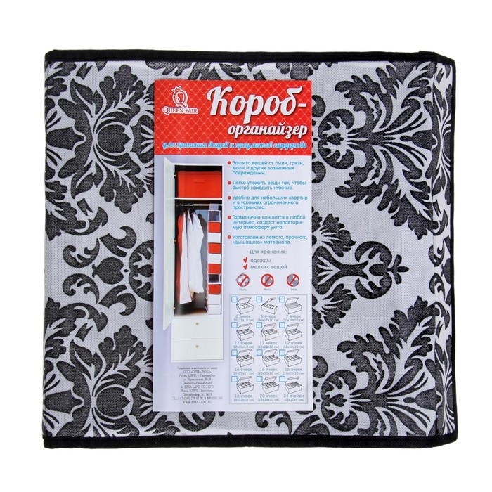 Органайзер для белья с крышкой, 16 ячеек, 30х30х10 см, "Вензель", цвет черно-белый