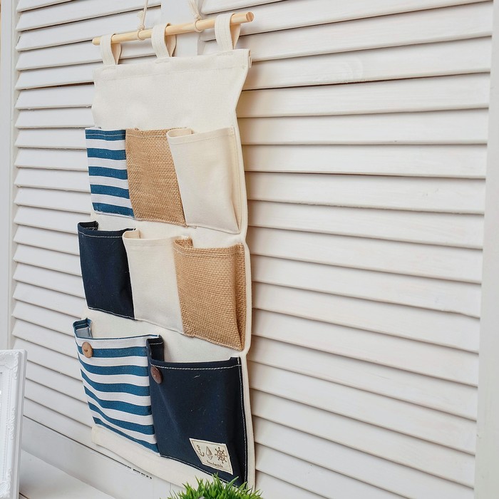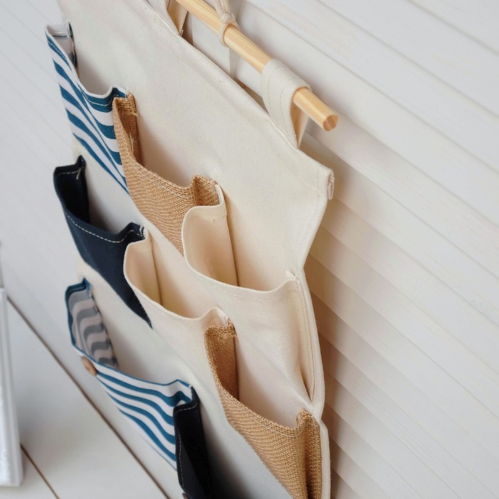 Органайзер на верёвке, 8 разноцветных отделов, без хлястика, хлопок, белый, 1х35х51 см