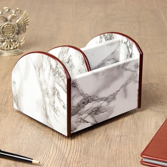 Органайзер настольный, 4 секции, под белый мрамор, вращается, 8,5*16*14см